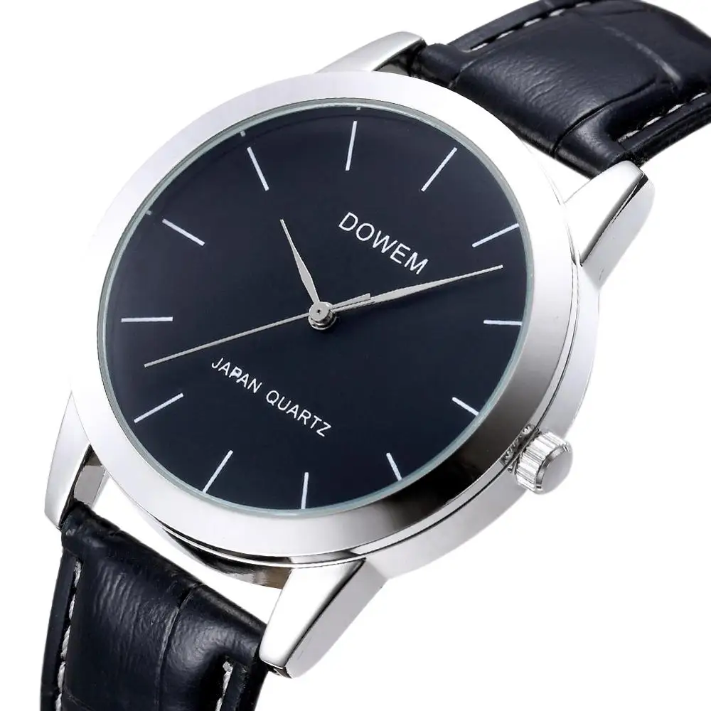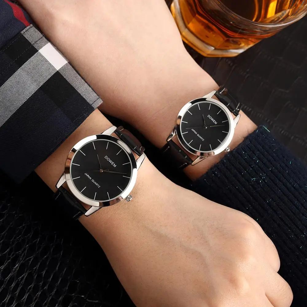 Classic Black Dial Leather Band Cheap Quartz Wrist Watches Men Women Luxury Brand Bracelet Couples Valentine Christmas Gift