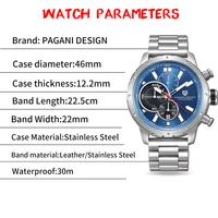 | PAGANI DESIGN Fashion watches mens stainless steel waterproof watch men luxury brand clock Quartz wristwatch Relogio Masculino |